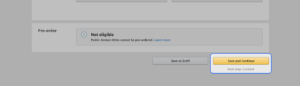 Your book’s ISBN appears on the Kindle eBook Content page below your book cover image. When you’re done with the first 7 items listed above, choose Save and Continue at the bottom of the page to get to this next part.